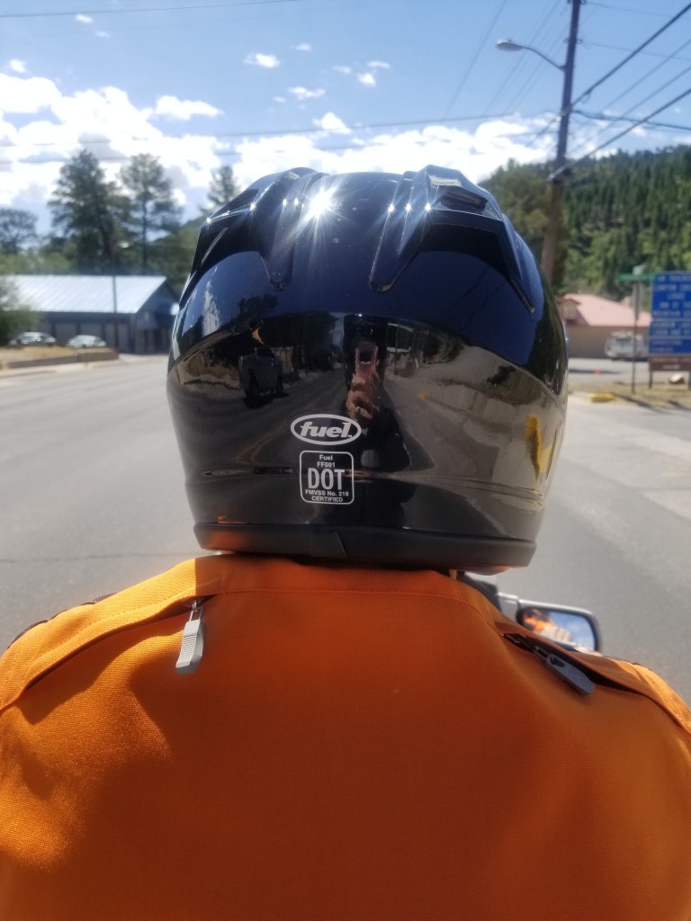 I have discovered two particular reasons I try to stay close enough that we bump helmets, protection and anticipating. Sometimes I think I could scoot back and get more comfortable, give my back a rest. But when I do, it takes more effort to hold myself and my head upright, because Benny doesn’t block as much wind that way. It also takes me out of reach to hold onto him and steady myself when we suddenly accelerate or slow down. So, in the long run, it actually causes more strain on my body and back instead of relaxing them. When I sit back alone, on my own, I leave the safety and protection his presence offers. When I am close enough to feel his body movements and bump helmets, I can anticipate his next move.