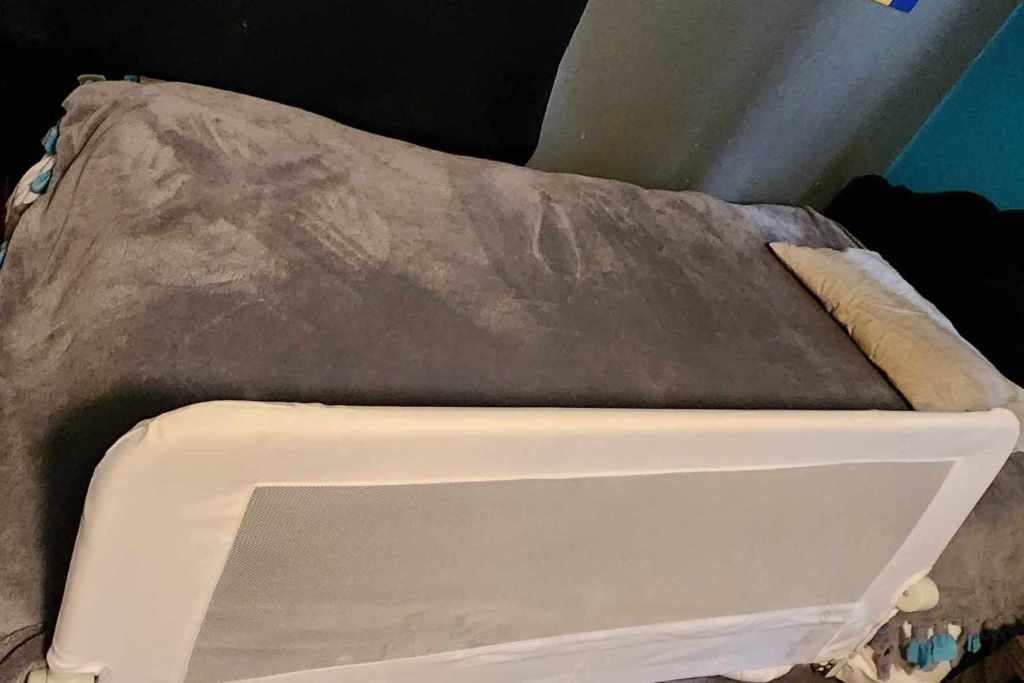 Both are growing like weeds, and I’m afraid Wesley is outgrowing the playpen we use as a crib. So, we bought a bed rail and decided to make him a “big boy bed.” I threw all the pillows from the twin bed into the crib and moved the blankets and his pillow from the playpen. We got the rail assembled and in place. We were committed to this new endeavor.